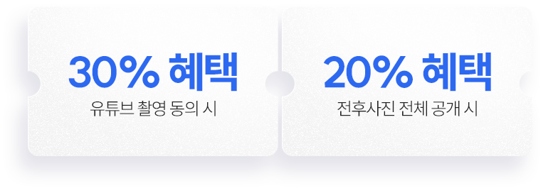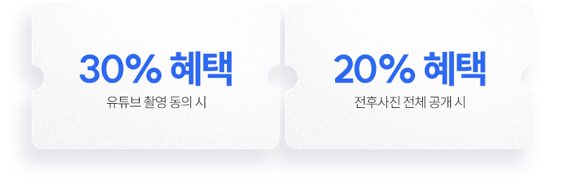 촬영 또는 이미지 공개 여부에 따라 일부 시술에 혜택이 제공됩니다.